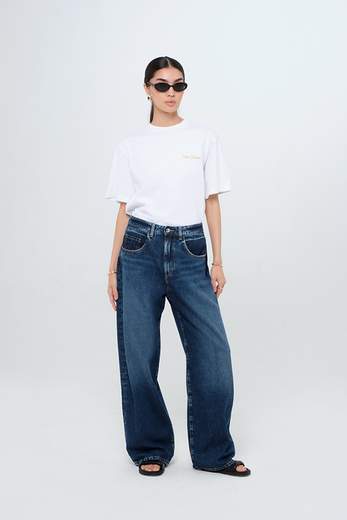 Jeans gamba larga, vita media, tasche funzionali, Jeans senza elasticità. Questo modello veste conforme.